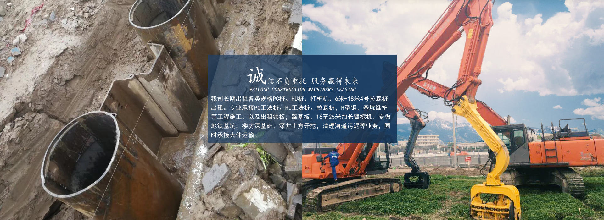 杭州偉龍工程機(jī)械設(shè)備租賃有限公司主要經(jīng)營(yíng)各類規(guī)格拉森樁租賃、PC工法樁出租、長(zhǎng)臂挖機(jī)租賃和平板車租賃等服務(wù)